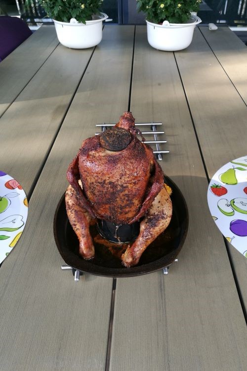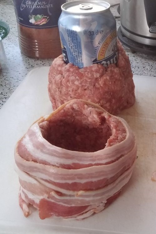 View moreLaita pintamaustettu kana oluttölkin päälle.