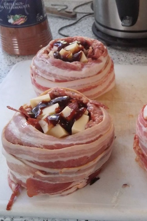 View moreKääri pekoniin ja täytä pekonisilpulla, juustolla ja mausta.