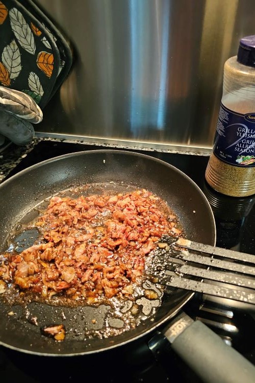 View moreRuskista pekonisilppua, sipulia, mausta.