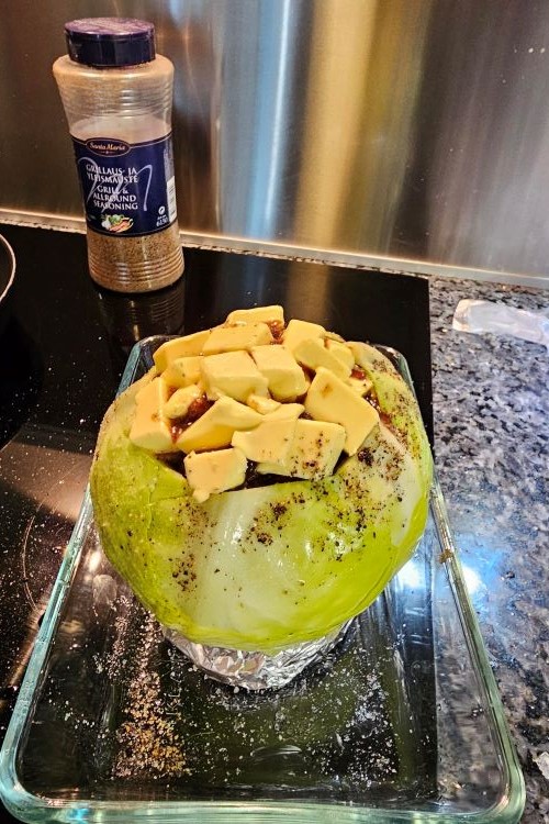View moreTäytä kolo, lisää voinokareita. Öljyä ja mausta pinta.